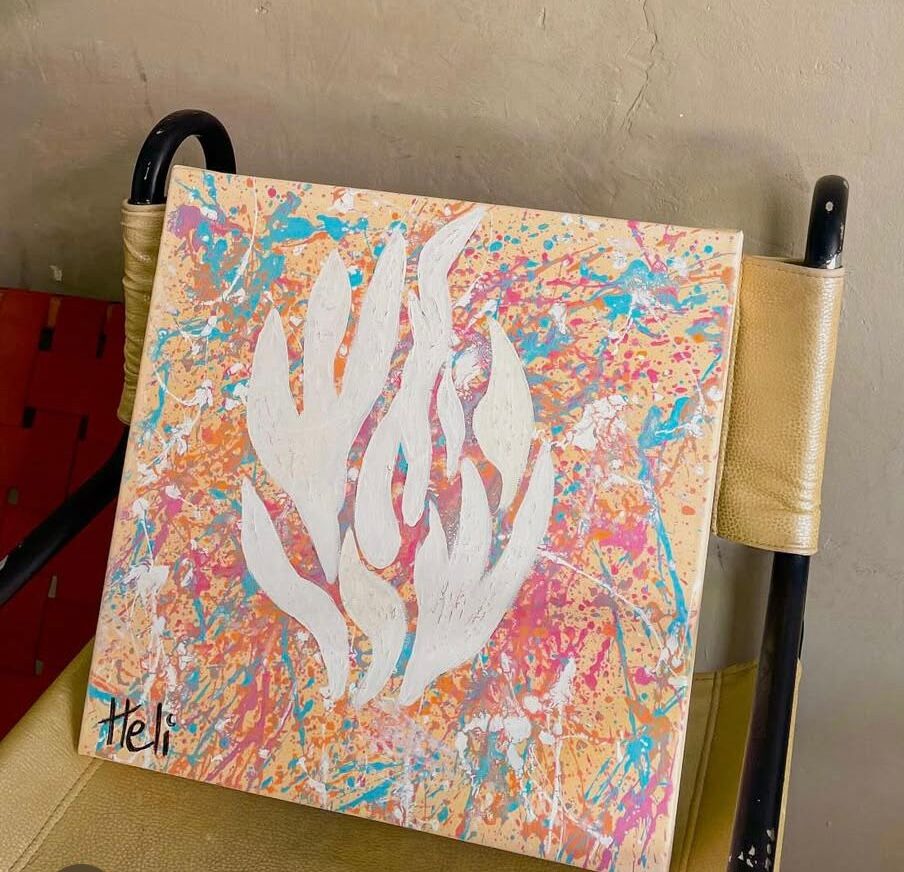 ציור מקורי “האש שלי”, בגודל 40×40 ס״מ, בצבעים חיים ואקריל.