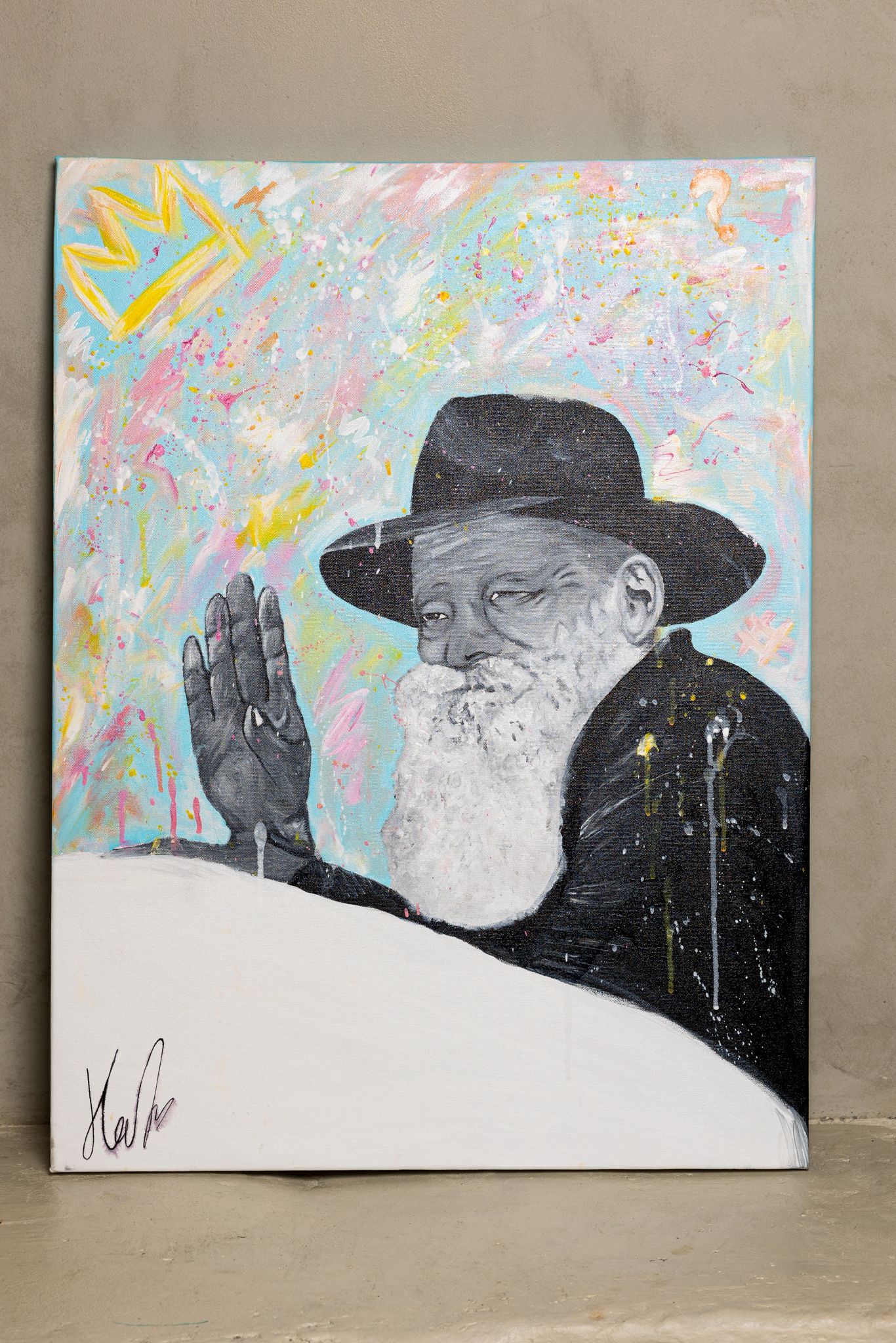 ציור מקורי של הרבי מלובביץ’, בגודל 60×80 ס״מ, בצבעי אקריל.